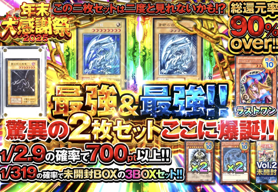 1回80円から20万円までの価格帯でオリパが提供されています。ポイントは現金に換金できません。