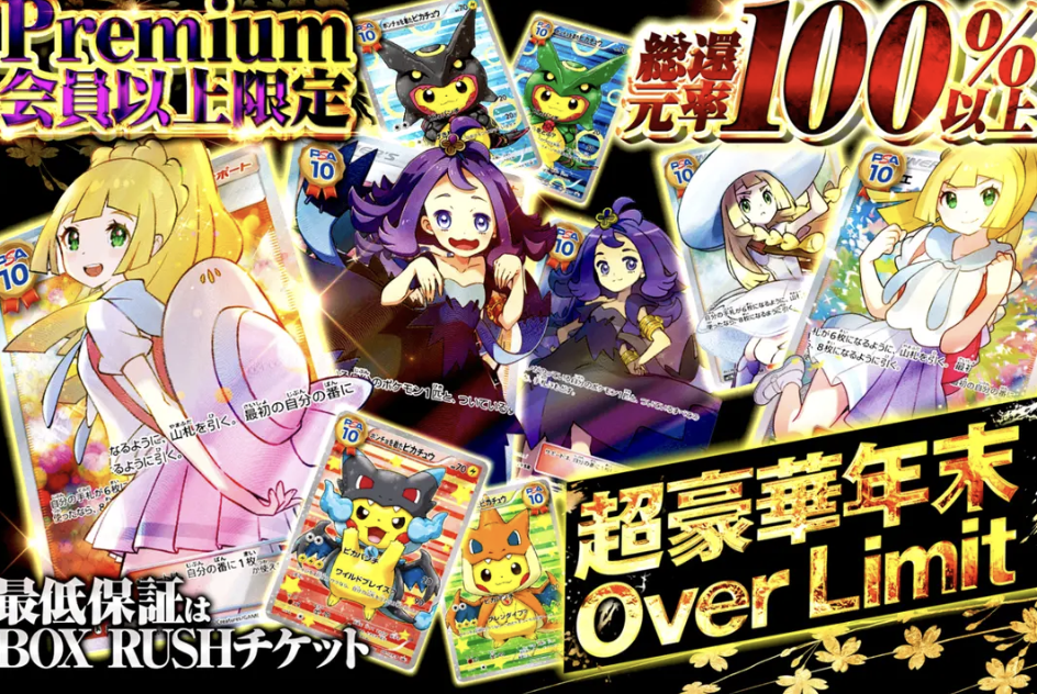 リーリエやアセロラ、ポンチョピカチュウといった超高額カードやPSA鑑定品が封入されたオリパも多く、一攫千金を狙えるチャンスがあります。