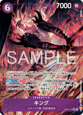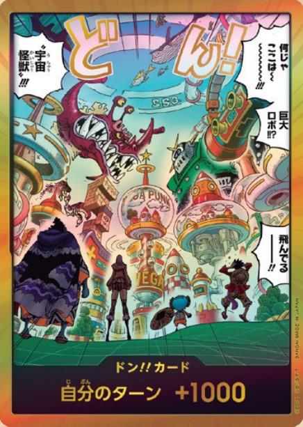 ・スペシャルカード:6種 ・リーダーカード:1種 ・シークレットレア:1種 ・スーパーレア:9種 ・レア:21種 ・コモン:29種 ・ドン!!カード:1種 |