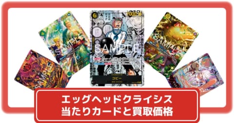 ワンピースカードゲームのエクストラブースター第4弾「EGGHEAD CRISIS」の当たりカードや買取価格を紹介しています。レアリティ毎の価格や封入率についても掲載しているので、ぜひ参考にしてください。