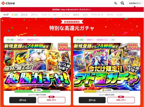 Cloveオリパは、株式会社トラストハブが運営するオンラインオリパサービスです。