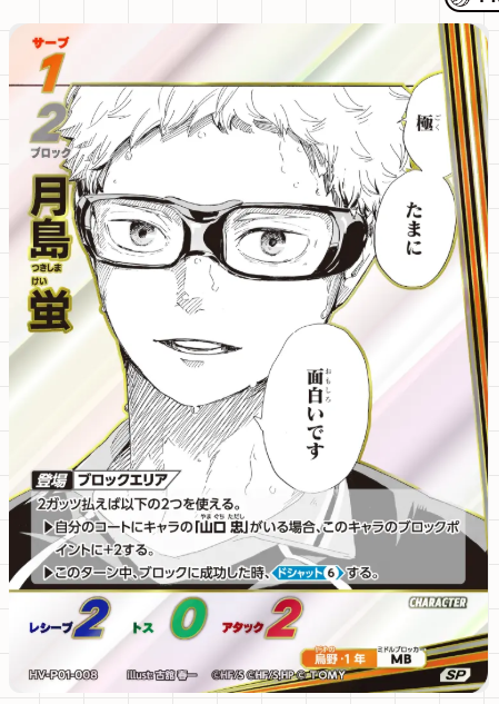 2025年10月25日に発売された「ハイキュー!!バボカ!!BREAK」ブースターパック「ゴミ捨て場の決戦」は、アニメ『ハイキュー!!』の熱い試合をカードゲームで体験できる第1弾パックです。本記事では、主要キャラクターの当たりカードや最新の価格相場、レアリティごとの封入率について詳しく解説します。