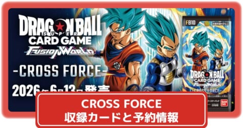 ドラゴンボールスーパーカードゲーム ブースターパック CROSS FORCE【FB10】の抽選・予約情報をまとめています。ネット通販サイトの情報を主に掲載しているので、ぜひ参考にしてください。