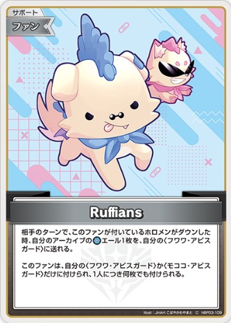 ロボ子さん/さくらみこ/星街すいせい/アキ・ローゼンタール/赤井はあと/戌神ころね/兎田ぺこら/不知火フレア/角巻わため/常闇トワ/姫森ルーナ/獅白ぼたん/鷹嶺ルイ/風真いろは/火威青/音乃瀬奏/轟はじめ/アユンダ・リス/こぼ・かなえる/小鳥遊キアラ/フワワ・アビスガード/モココ・アビスガード