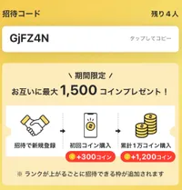 コイン購入で無料で300コイン貰えます!さらにコイン購入すれば1200コイン追加で貰えますので是非ご活用ください!