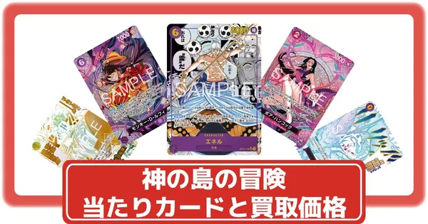 【ワンピースカード】神の島の冒険の当たりカードと買取価格・封入率まとめ