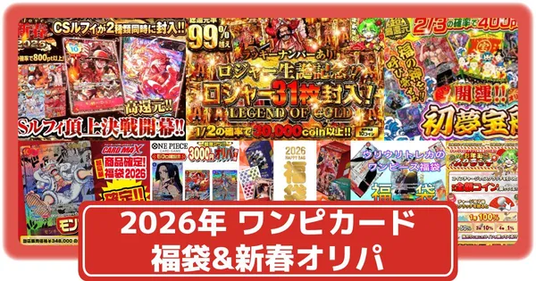 2024年12月31日 16:462026年に発売されるワンピースカードの福袋や新春オリパを紹介しています。 通常...